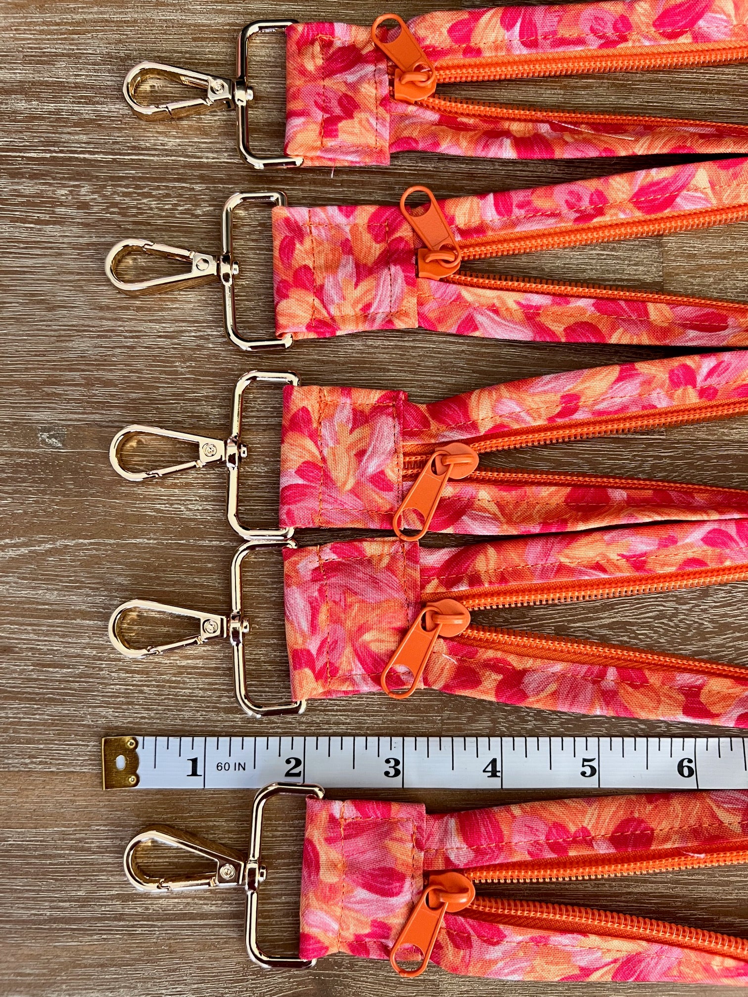 Bright, bold, and beautifully practical—the Nan-Tuckit Zip in Orange & Pink Cotton Print brings a splash of sunshine to your everyday carry. This cheerful wristlet isn’t just eye-catching—it’s your go-to solution for keeping sweaters and jackets secure while you’re on the move.
